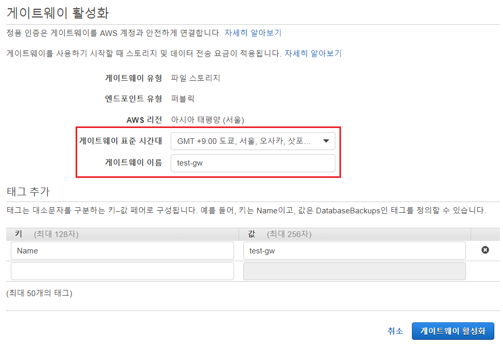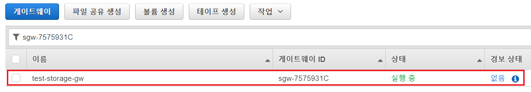> 스토리지 게이트웨이가 생성됨을 확인 가능