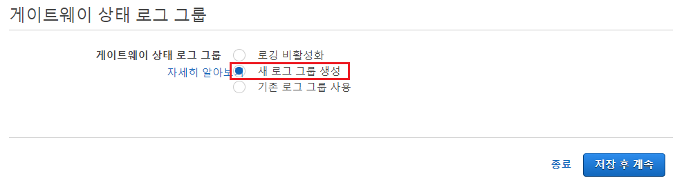 > 로그 그룹 설정을 통해 로깅 활성화 유무 선택